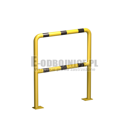 Barierka techniczna z poprzeczką wykonana z rury o średnicy 60,3 mm. Malowana na kolor żółty, pasy odblaskowe czarne z folii pierwszej generacji. Wysokość barierki 1100 mm. Bardzo solidna i trwała, świetnie nadaje się do ochrony maszyn, wygradzania ciągów komunikacyjnych itp.. Mocuje się ją do podłoża kotwami rozporowymi, stopy mają po 4 otwory montażowe o średnicy 10 mm. Na zamówienie możemy wykonać barierki z rury o innych średnicach lub wymiarach