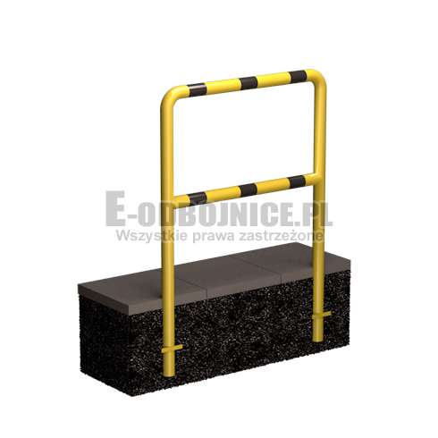 Barierka techniczna z poprzeczką wykonana z rury o średnicy 60,3 mm. Malowana na kolor żółty, pasy odblaskowe czarne z folii pierwszej generacji. Wysokość barierki 1100 mm. Bardzo solidna i trwała, świetnie nadaje się do ochrony maszyn, wygradzania ciągów komunikacyjnych itp.. Na zamówienie możemy wykonać barierki z rury o innych średnicach lub wymiarach