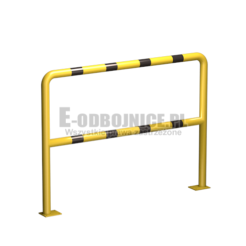 Barierka techniczna z poprzeczką wykonana z rury o średnicy 60,3 mm. Malowana na kolor żółty, pasy odblaskowe czarne z folii pierwszej generacji. Wysokość barierki 1100 mm. Bardzo solidna i trwała, świetnie nadaje się do ochrony maszyn, wygradzania ciągów komunikacyjnych itp.. Mocuje się ją do podłoża kotwami rozporowymi, stopy mają po 4 otwory montażowe o średnicy 10 mm. Na zamówienie możemy wykonać barierki z rury o innych średnicach lub wymiarach