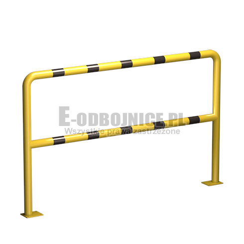 Barierka techniczna z poprzeczką wykonana z rury o średnicy 60,3 mm. Malowana na kolor żółty, pasy odblaskowe czarne z folii pierwszej generacji. Wysokość barierki 1100 mm. Bardzo solidna i trwała, świetnie nadaje się do ochrony maszyn, wygradzania ciągów komunikacyjnych itp.. Mocuje się ją do podłoża kotwami rozporowymi, stopy mają po 4 otwory montażowe o średnicy 10 mm. Na zamówienie możemy wykonać barierki z rury o innych średnicach lub wymiarach