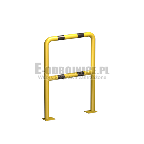 Barierka techniczna z poprzeczką wykonana z rury o średnicy 60,3 mm. Malowana na kolor żółty, pasy odblaskowe czarne z folii pierwszej generacji. Wysokość barierki 1100 mm. Bardzo solidna i trwała, świetnie nadaje się do ochrony maszyn, wygradzania ciągów komunikacyjnych itp.. Mocuje się ją do podłoża kotwami rozporowymi, stopy mają po 4 otwory montażowe o średnicy 10 mm. Na zamówienie możemy wykonać barierki z rury o innych średnicach lub wymiarach