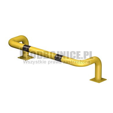 Odbojnica przemysłowa U-2, średnica rury 76,1 mm, lakierowana proszkowo na kolor żółty, pasy z czarnej foli odblaskowej I-generacji. Służą one do zabezpieczenia słupów, ścian, urządzeń, rur itp... Stosowane na powierzchniach produkcyjnych, magazynowych, parkingowych itp.... Odbojnica jest osadzona na trzech nogach. Każda stopa posiada cztery otwory montażowe o średnicy 10 mm. Stopa wykonana z blachy grubości 8 mm.