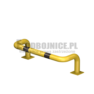 Odbojnica przemysłowa U-2, średnica rury 76,1 mm, lakierowana proszkowo na kolor żółty, pasy z czarnej foli odblaskowej I-generacji. Służą one do zabezpieczenia słupów, ścian, urządzeń, rur itp... Stosowane na powierzchniach produkcyjnych, magazynowych, parkingowych itp.... Odbojnica jest osadzona na trzech nogach. Każda stopa posiada cztery otwory montażowe o średnicy 10 mm. Stopa wykonana z blachy grubości 8 mm.