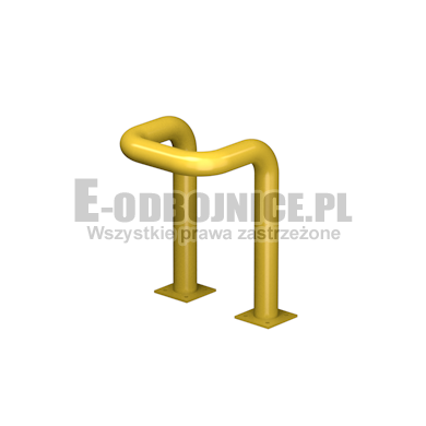 Odbojnica przemysłowa U-2, średnica rury 76,1 mm, lakierowana proszkowo na kolor żółty, pasy z czarnej foli odblaskowej I-generacji. Służą one do zabezpieczenia słupów, ścian, urządzeń, rur itp... Stosowane na powierzchniach produkcyjnych, magazynowych, parkingowych itp.... Odbojnica jest osadzona na trzech nogach. Każda stopa posiada cztery otwory montażowe o średnicy 10 mm. Stopa wykonana z blachy grubości 8 mm.