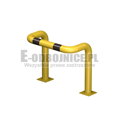 Odbojnica przemysłowa U-2, średnica rury 76,1 mm, lakierowana proszkowo na kolor żółty, pasy z czarnej foli odblaskowej I-generacji. Służą one do zabezpieczenia słupów, ścian, urządzeń, rur itp... Stosowane na powierzchniach produkcyjnych, magazynowych, parkingowych itp.... Odbojnica jest osadzona na trzech nogach. Każda stopa posiada cztery otwory montażowe o średnicy 10 mm. Stopa wykonana z blachy grubości 8 mm.