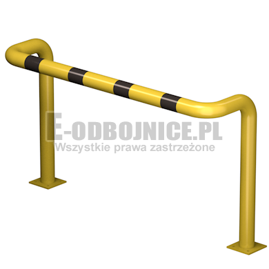 Odbojnica przemysłowa U-2, średnica rury 76,1 mm, lakierowana proszkowo na kolor żółty, pasy z czarnej foli odblaskowej I-generacji. Służą one do zabezpieczenia słupów, ścian, urządzeń, rur itp... Stosowane na powierzchniach produkcyjnych, magazynowych, parkingowych itp.... Odbojnica jest osadzona na trzech nogach. Każda stopa posiada cztery otwory montażowe o średnicy 10 mm. Stopa wykonana z blachy grubości 8 mm.