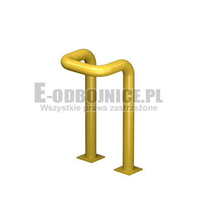 Odbojnica przemysłowa U-2, średnica rury 76,1 mm, lakierowana proszkowo na kolor żółty, pasy z czarnej foli odblaskowej I-generacji. Służą one do zabezpieczenia słupów, ścian, urządzeń, rur itp... Stosowane na powierzchniach produkcyjnych, magazynowych, parkingowych itp.... Odbojnica jest osadzona na trzech nogach. Każda stopa posiada cztery otwory montażowe o średnicy 10 mm. Stopa wykonana z blachy grubości 8 mm.
