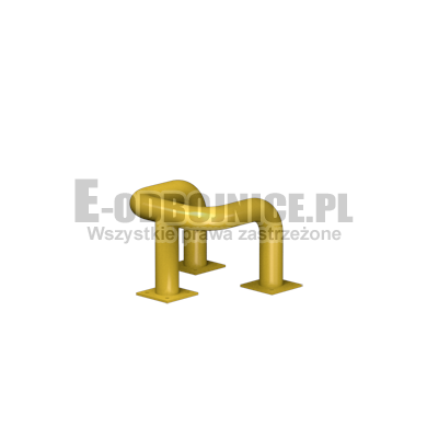 Odbojnica przemysłowa U-3, średnica rury 76,1 mm, lakierowane proszkowo na kolor żółty, pasy z czarnej foli odblaskowej I-generacji. Służą one do zabezpieczenia słupów, ścian, urządzeń, rur itp... Stosowane na powierzchniach produkcyjnych, magazynowych, parkingowych itp.... Odbojnica jest osadzona na trzech nogach. Każda stopa posiada cztery otwory montażowe o średnicy 10 mm. Stopa wykonana z blachy grubości 8 mm.
