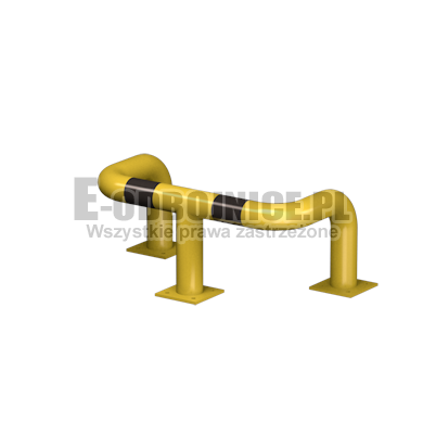 Odbojnica przemysłowa U-3, średnica rury 76,1 mm, lakierowane proszkowo na kolor żółty, pasy z czarnej foli odblaskowej I-generacji. Służą one do zabezpieczenia słupów, ścian, urządzeń, rur itp... Stosowane na powierzchniach produkcyjnych, magazynowych, parkingowych itp.... Odbojnica jest osadzona na trzech nogach. Każda stopa posiada cztery otwory montażowe o średnicy 10 mm. Stopa wykonana z blachy grubości 8 mm.