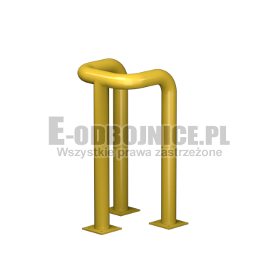 Odbojnica przemysłowa U-3, średnica rury 76,1 mm, lakierowane proszkowo na kolor żółty, pasy z czarnej foli odblaskowej I-generacji. Służą one do zabezpieczenia słupów, ścian, urządzeń, rur itp... Stosowane na powierzchniach produkcyjnych, magazynowych, parkingowych itp.... Odbojnica jest osadzona na trzech nogach. Każda stopa posiada cztery otwory montażowe o średnicy 10 mm. Stopa wykonana z blachy grubości 8 mm.