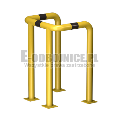 Odbojnice przemysłowe U-4, średnica rury 76,1 mm, lakierowane proszkowo na kolor żółty, pasy z czarnej foli odblaskowej I-generacji. Służą one do zabezpieczenia c rur itp... Stosowane na powierzchniach produkcyjnych, magazynowych, parkingowych itp.... Odbojnica jest osadzona na czterech nogach. Każda stopa posiada cztery otwory montażowe o średnicy 10 mm. Stopa wykonana z blachy grubości 8 mm.