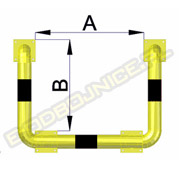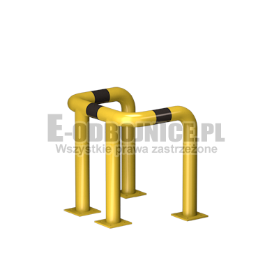 Odbojnice przemysłowe U-4, średnica rury 76,1 mm, lakierowane proszkowo na kolor żółty, pasy z czarnej foli odblaskowej I-generacji. Służą one do zabezpieczenia c rur itp... Stosowane na powierzchniach produkcyjnych, magazynowych, parkingowych itp.... Odbojnica jest osadzona na czterech nogach. Każda stopa posiada cztery otwory montażowe o średnicy 10 mm. Stopa wykonana z blachy grubości 8 mm.