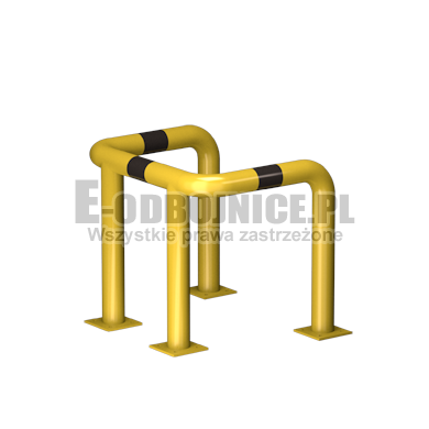 Odbojnice przemysłowe U-4, średnica rury 76,1 mm, lakierowane proszkowo na kolor żółty, pasy z czarnej foli odblaskowej I-generacji. Służą one do zabezpieczenia c rur itp... Stosowane na powierzchniach produkcyjnych, magazynowych, parkingowych itp.... Odbojnica jest osadzona na czterech nogach. Każda stopa posiada cztery otwory montażowe o średnicy 10 mm. Stopa wykonana z blachy grubości 8 mm.