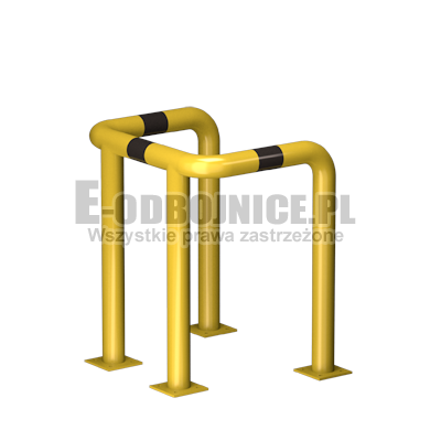 Odbojnice przemysłowe U-4, średnica rury 76,1 mm, lakierowane proszkowo na kolor żółty, pasy z czarnej foli odblaskowej I-generacji. Służą one do zabezpieczenia c rur itp... Stosowane na powierzchniach produkcyjnych, magazynowych, parkingowych itp.... Odbojnica jest osadzona na czterech nogach. Każda stopa posiada cztery otwory montażowe o średnicy 10 mm. Stopa wykonana z blachy grubości 8 mm.