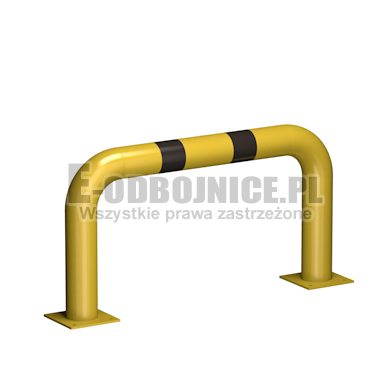 Odbojnice przemysłowe liniowe wykonane z rur 114,3 mm, lakierowane proszkowo na kolor żółty , pasy z czarnej foli odblaskowej I-generacji. Służą one do zabezpieczenia ścian, urządzeń, traktów komunikacyjnych w powierzchniach produkcyjnych, magazynowych i sklepowych. Dwie stopy wykonane z blachy o gr. 8 mm z czterema otworami montażowymi o średnicy 10 mm. Wysokość i długość do wyboru.