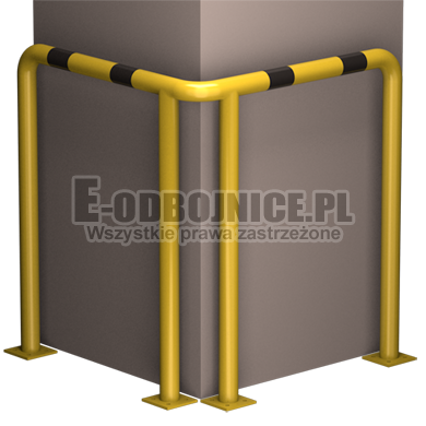Odbojnice przemysłowe narożna wykonane z rur 60,3 mm, lakierowane proszkowo na kolor żółty , pasy z czarnej foli odblaskowej I-generacji. Służą one do zabezpieczenia ścian, urządzeń, traktów komunikacyjnych, słupów w powierzchniach produkcyjnych, magazynowych i sklepowych. Stopy wykonane z blachy o gr. 8 mm z czterema otworami montażowymi o średnicy 10 mm. Wysokość i długość ramion do wyboru.