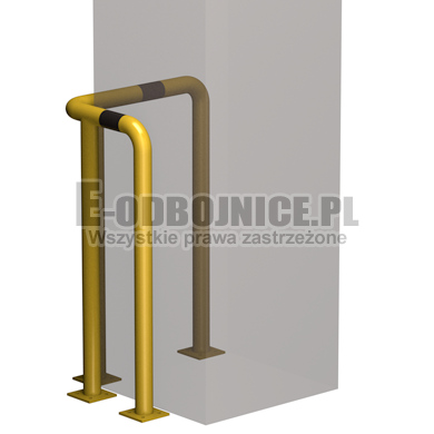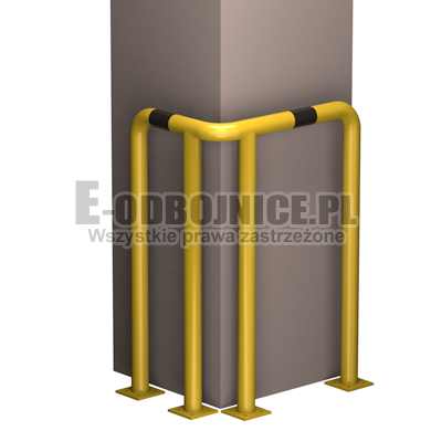 Odbojnica przemysłowa narożna wykonane z rur 60,3 mm, lakierowane proszkowo na kolor żółty , pasy z czarnej foli odblaskowej I-generacji. Służą one do zabezpieczenia ścian, urządzeń, traktów komunikacyjnych, słupów w powierzchniach produkcyjnych, magazynowych i sklepowych. Stopy wykonane z blachy o gr. 8 mm z czterema otworami montażowymi o średnicy 10 mm. Wysokość i długość ramion do wyboru.