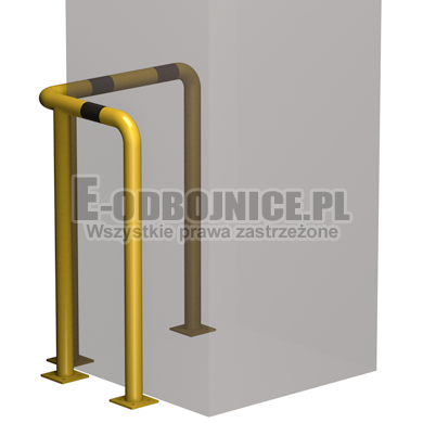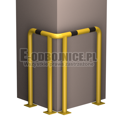 Odbojnica przemysłowa narożna wykonane z rur 60,3 mm, lakierowane proszkowo na kolor żółty , pasy z czarnej foli odblaskowej I-generacji. Służą one do zabezpieczenia ścian, urządzeń, traktów komunikacyjnych, słupów w powierzchniach produkcyjnych, magazynowych i sklepowych. Stopy wykonane z blachy o gr. 8 mm z czterema otworami montażowymi o średnicy 10 mm. Wysokość i długość ramion do wyboru.