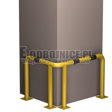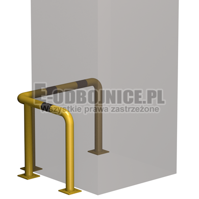 Odbojnica przemysłowa narożna wykonane z rur 60,3 mm, lakierowane proszkowo na kolor żółty , pasy z czarnej foli odblaskowej I-generacji. Służą one do zabezpieczenia ścian, urządzeń, traktów komunikacyjnych, słupów w powierzchniach produkcyjnych, magazynowych i sklepowych. Stopy wykonane z blachy o gr. 8 mm z czterema otworami montażowymi o średnicy 10 mm. Wysokość i długość ramion do wyboru.