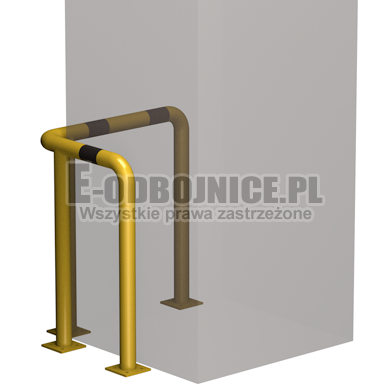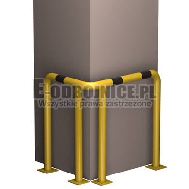 Odbojnica przemysłowa narożna wykonane z rur 60,3 mm, lakierowane proszkowo na kolor żółty , pasy z czarnej foli odblaskowej I-generacji. Służą one do zabezpieczenia ścian, urządzeń, traktów komunikacyjnych, słupów w powierzchniach produkcyjnych, magazynowych i sklepowych. Stopy wykonane z blachy o gr. 8 mm z czterema otworami montażowymi o średnicy 10 mm. Wysokość i długość ramion do wyboru.