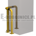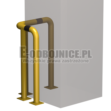 Odbojnica przemysłowa narożna wykonane z rur 76,1 mm, lakierowane proszkowo na kolor żółty , pasy z czarnej foli odblaskowej I-generacji. Służą one do zabezpieczenia ścian, urządzeń, traktów komunikacyjnych, słupów w powierzchniach produkcyjnych, magazynowych i sklepowych. Stopy wykonane z blachy o gr. 8 mm z czterema otworami montażowymi o średnicy 10 mm. Wysokość i długość ramion do wyboru.