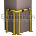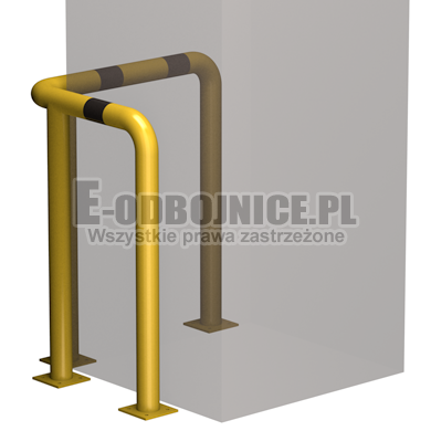 Odbojnica przemysłowa narożna wykonane z rur 76,1 mm, lakierowane proszkowo na kolor żółty , pasy z czarnej foli odblaskowej I-generacji. Służą one do zabezpieczenia ścian, urządzeń, traktów komunikacyjnych, słupów w powierzchniach produkcyjnych, magazynowych i sklepowych. Stopy wykonane z blachy o gr. 8 mm z czterema otworami montażowymi o średnicy 10 mm. Wysokość i długość ramion do wyboru.