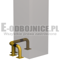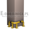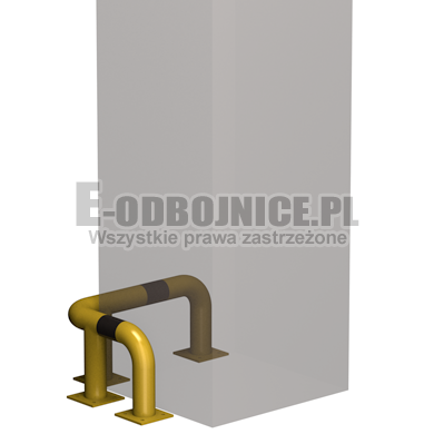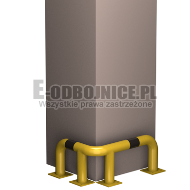 Odbojnica przemysłowa narożna wykonane z rur 76,1 mm, lakierowane proszkowo na kolor żółty , pasy z czarnej foli odblaskowej I-generacji. Służą one do zabezpieczenia ścian, urządzeń, traktów komunikacyjnych, słupów w powierzchniach produkcyjnych, magazynowych i sklepowych. Stopy wykonane z blachy o gr. 8 mm z czterema otworami montażowymi o średnicy 10 mm. Wysokość i długość ramion do wyboru.