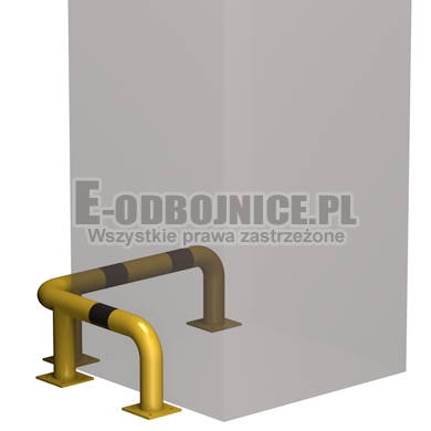 Odbojnica przemysłowa narożna wykonane z rur 76,1 mm, lakierowane proszkowo na kolor żółty , pasy z czarnej foli odblaskowej I-generacji. Służą one do zabezpieczenia ścian, urządzeń, traktów komunikacyjnych, słupów w powierzchniach produkcyjnych, magazynowych i sklepowych. Stopy wykonane z blachy o gr. 8 mm z czterema otworami montażowymi o średnicy 10 mm. Wysokość i długość ramion do wyboru.