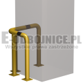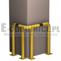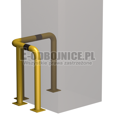 Odbojnica przemysłowa narożna wykonane z rur 76,1mm, lakierowane proszkowo na kolor żółty , pasy z czarnej foli odblaskowej I-generacji. Służą one do zabezpieczenia ścian, urządzeń, traktów komunikacyjnych, słupów w powierzchniach produkcyjnych, magazynowych i sklepowych. Stopy wykonane z blachy o gr. 8 mm z czterema otworami montażowymi o średnicy 10 mm. Wysokość i długość ramion do wyboru.