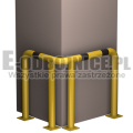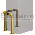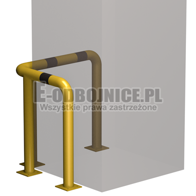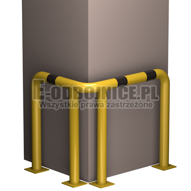 Odbojnica przemysłowa narożna wykonane z rur 76,1mm, lakierowane proszkowo na kolor żółty , pasy z czarnej foli odblaskowej I-generacji. Służą one do zabezpieczenia ścian, urządzeń, traktów komunikacyjnych, słupów w powierzchniach produkcyjnych, magazynowych i sklepowych. Stopy wykonane z blachy o gr. 8 mm z czterema otworami montażowymi o średnicy 10 mm. Wysokość i długość ramion do wyboru.