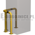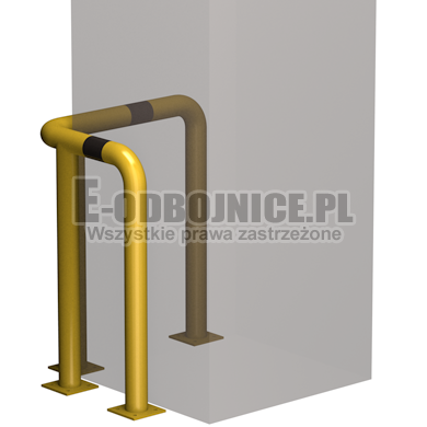 Odbojnica przemysłowa narożna wykonane z rur 76,1 mm, lakierowane proszkowo na kolor żółty , pasy z czarnej foli odblaskowej I-generacji. Służą one do zabezpieczenia ścian, urządzeń, traktów komunikacyjnych, słupów w powierzchniach produkcyjnych, magazynowych i sklepowych. Stopy wykonane z blachy o gr. 8 mm z czterema otworami montażowymi o średnicy 10 mm. Wysokość i długość ramion do wyboru.