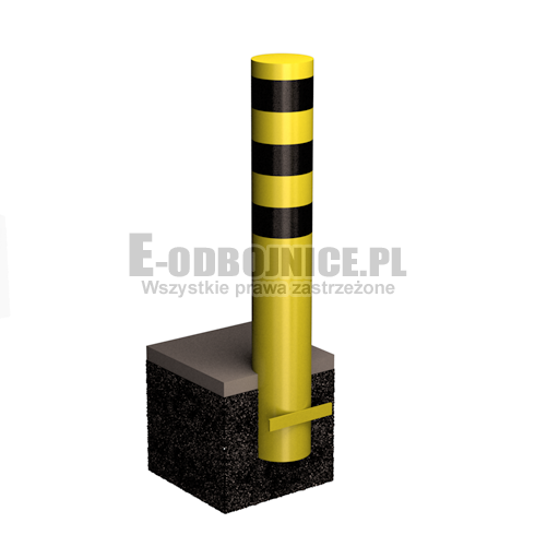 Odbojnica słupowa wykonana z rury stalowej grubościennej. Lakierowana proszkowo na kolor żółty wg. normy DIN4844. Pasy odblaskowe czarne pierwszej generacji. Podstawa o wymiarach 300 na 300 mm jest wykonana z blachy grubości 8 mm. Otwory montażowe o średnicy 12,5 mm. Bardzo wysoka jakość wykonania i materiały najlepszej jakości