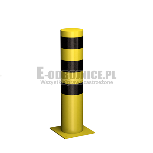 Odbojnica słupowa wykonana z rury stalowej grubościennej. Lakierowana proszkowo na kolor żółty wg. normy DIN4844. Pasy odblaskowe czarne pierwszej generacji. Podstawa o wymiarach 300 na 300 mm jest wykonana z blachy grubości 8 mm. Otwory montażowe o średnicy 12,5 mm. Bardzo wysoka jakość wykonania i materiały najlepszej jakości