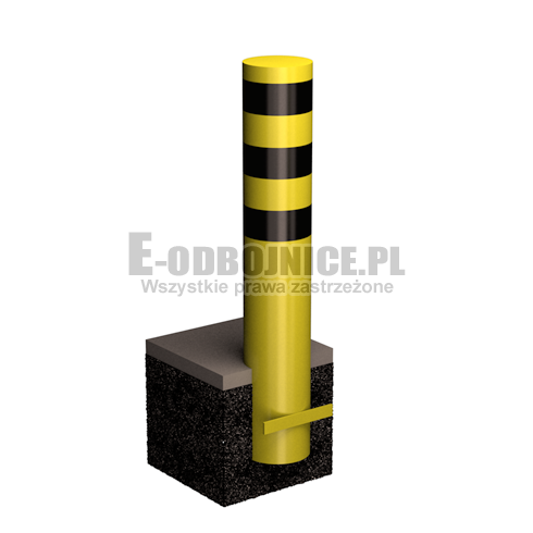 Odbojnica słupowa wykonana z rury stalowej grubościennej. Lakierowana proszkowo na kolor żółty wg. normy DIN4844. Pasy odblaskowe czarne pierwszej generacji. Podstawa o wymiarach 300 na 300 mm jest wykonana z blachy grubości 8 mm. Otwory montażowe o średnicy 12,5 mm. Bardzo wysoka jakość wykonania i materiały najlepszej jakości