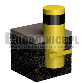 Odbojnica słupowa wykonana z rury stalowej grubościennej. Lakierowana proszkowo na kolor żółty wg. normy DIN4844. Pasy odblaskowe czarne pierwszej generacji. Podstawa o wymiarach 300 na 300 mm jest wykonana z blachy grubości 8 mm. Otwory montażowe o średnicy 12,5 mm. Bardzo wysoka jakość wykonania i materiały najlepszej jakości