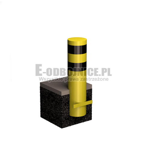 Odbojnica słupowa wykonana z rury stalowej grubościennej. Lakierowana proszkowo na kolor żółty wg. normy DIN4844. Pasy odblaskowe czarne pierwszej generacji. Podstawa o wymiarach 300 na 300 mm jest wykonana z blachy grubości 8 mm. Otwory montażowe o średnicy 12,5 mm. Bardzo wysoka jakość wykonania i materiały najlepszej jakości