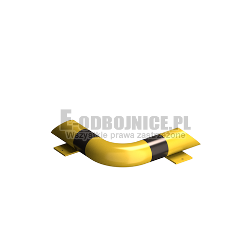 Odbojnice przemysłowe wózkowe narożne wykonane z rur o średnicy 114,3 mm, lakierowane proszkowo na kolor żółty, pasy z czarnej foli odblaskowej I-generacji. Służą one do zabezpieczenia słupów, ścian i urządzeń, zatrzymując koła wózka, stosowane na powierzchniach produkcyjnych, magazynowych i sklepowych